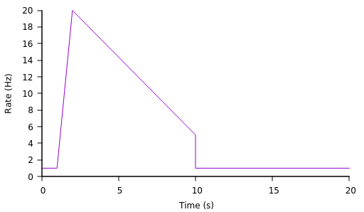 would be interpreted as the following firing rate profile over time:
